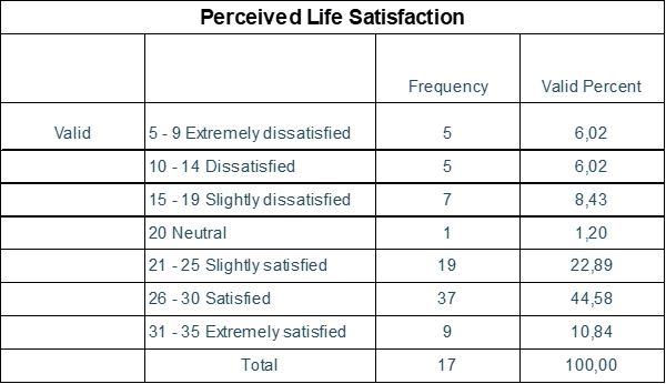 4.1.2 Perceived life satisfaction.